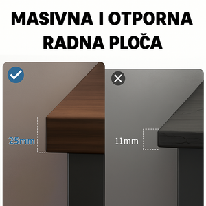 EOS kancelarijski radni stol ima deblju i čvršću ploču, pružajući vam stabilnu površinu za rad. Dovoljno je visok za udobno i neometano obavljanje poslova, omogućavajući vam produktivnost tokom radnog dana.