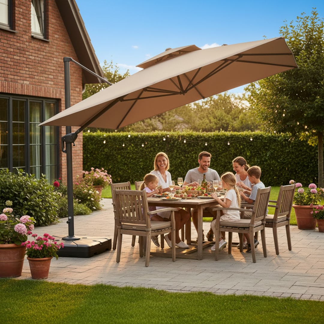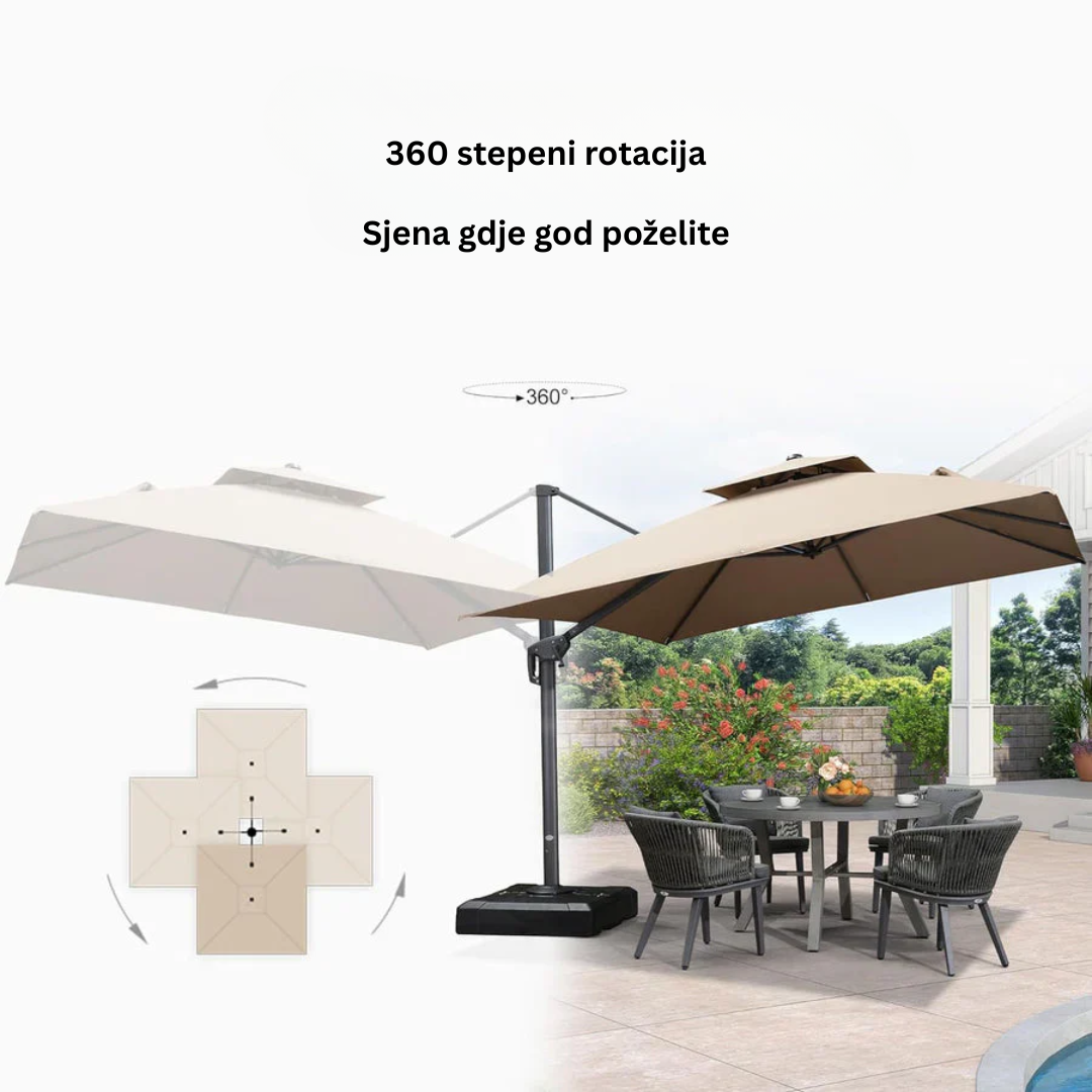 Unesite luksuz i vrhunsku zaštitu u vaše dvorište ili na terasu uz Roma konzolni suncobran. Dizajniran za maksimalnu funkcionalnost i eleganciju, ovaj suncobran nudi potpunu kontrolu nad sjenom tokom cijelog dana, bez obzira na kretanje sunca.