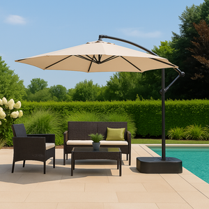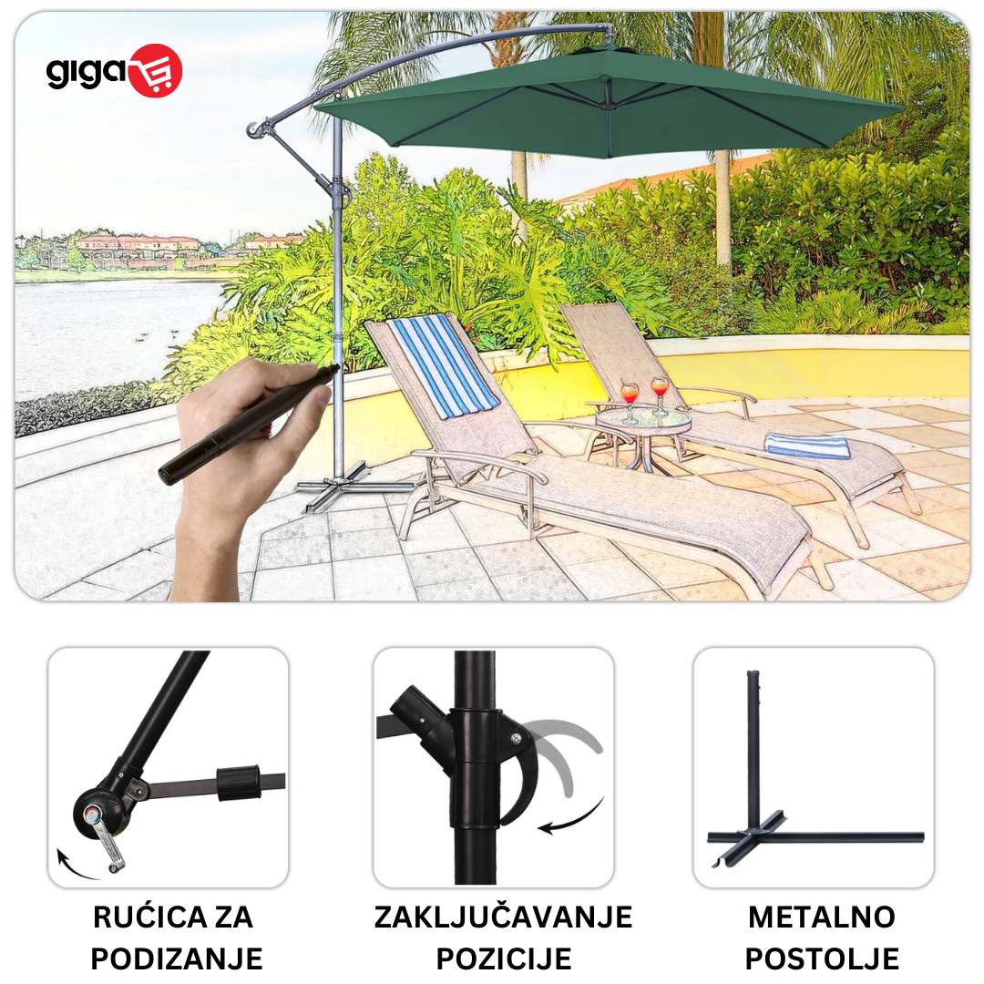 Uživajte u udobnosti i sigurnoj zaštiti od sunca uz ovaj praktičan set koji uključuje visokokvalitetni Shade vrtni suncobran i izdržljivo Breezi postolje kapaciteta 60 litara. Idealan je za dvorišta, vrtove, terase, balkone, plaže i ugostiteljske prostore.