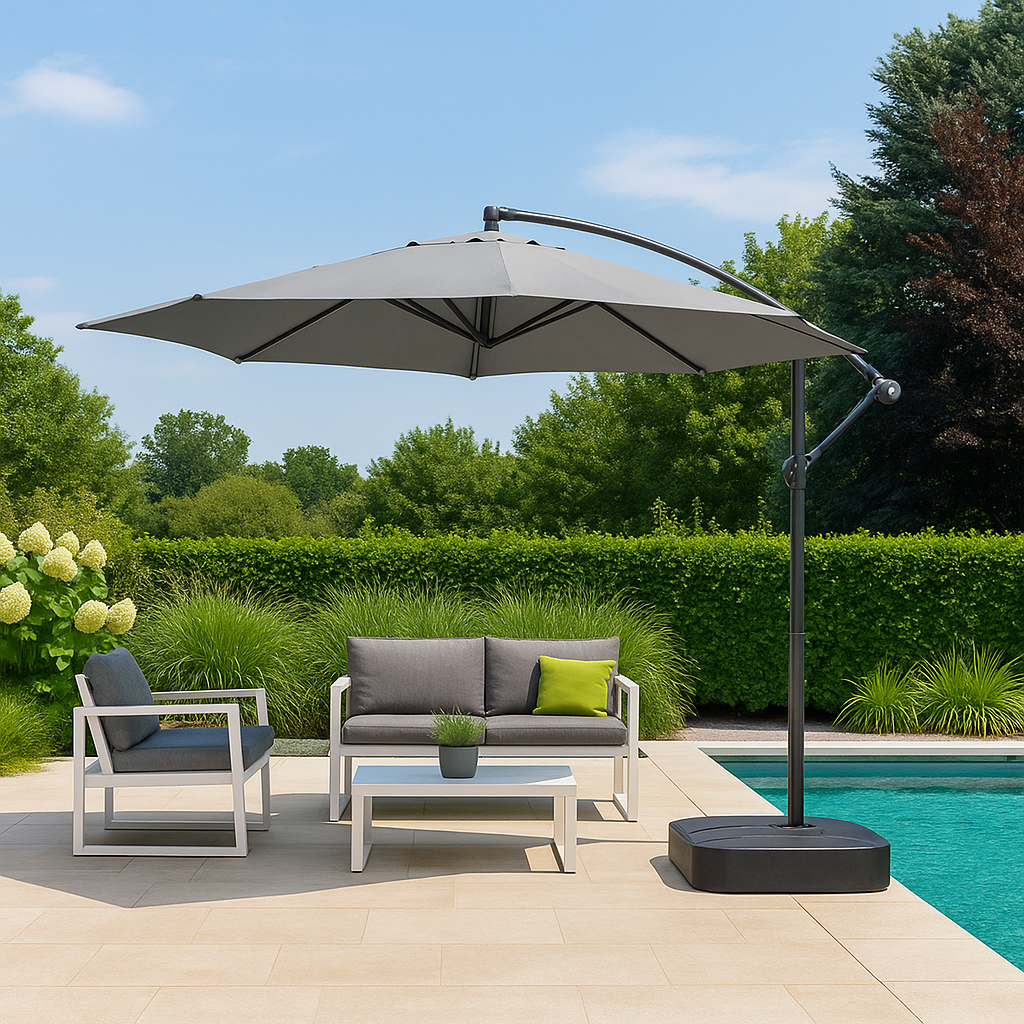 Uživajte u udobnosti i sigurnoj zaštiti od sunca uz ovaj praktičan set koji uključuje visokokvalitetni Shade vrtni suncobran i izdržljivo Breezi postolje kapaciteta 60 litara. Idealan je za dvorišta, vrtove, terase, balkone, plaže i ugostiteljske prostore.