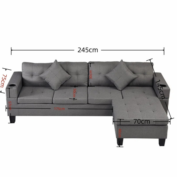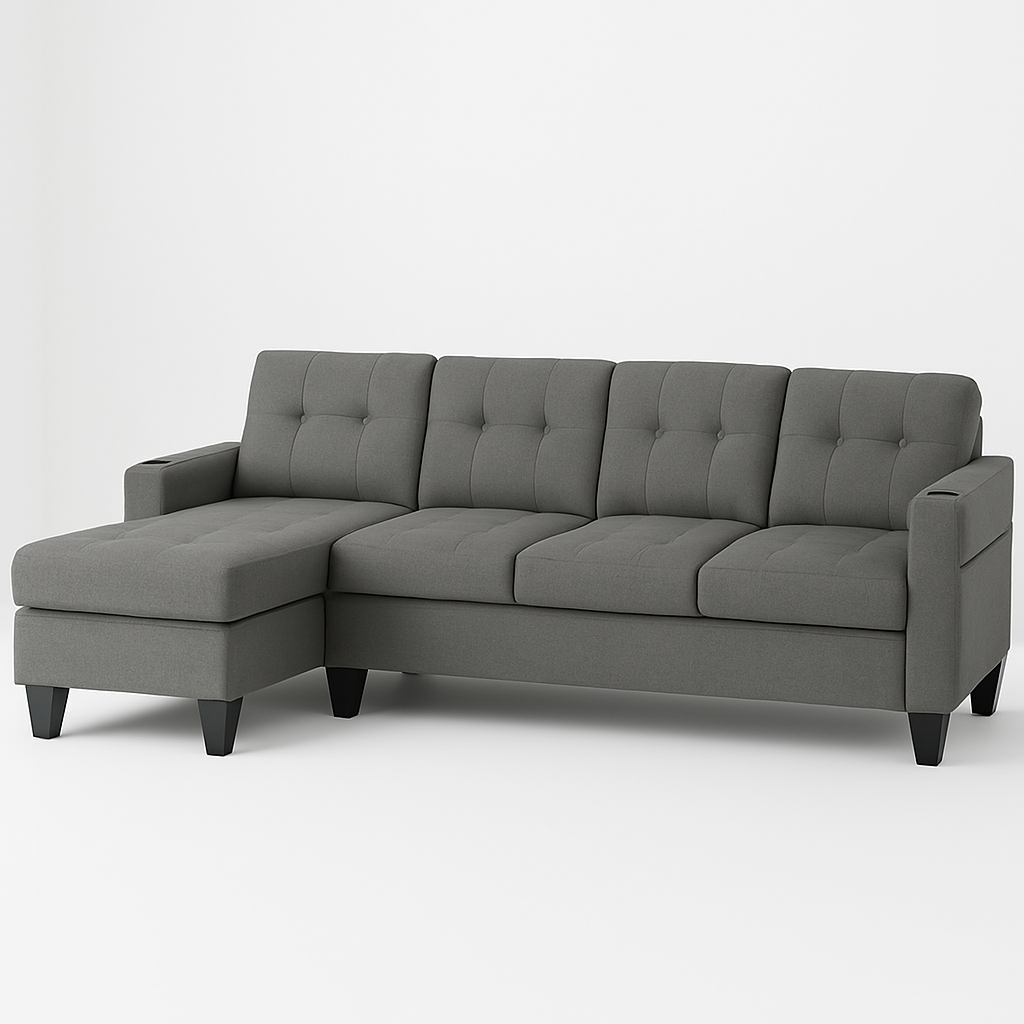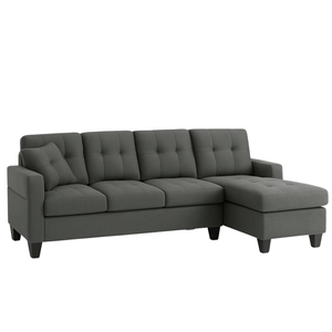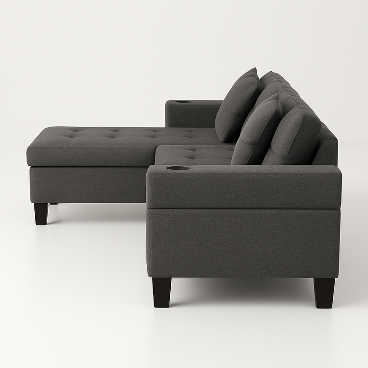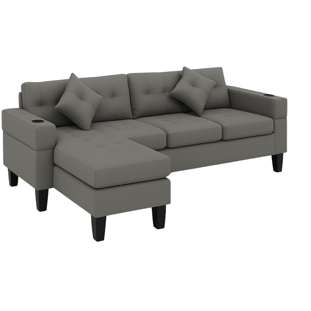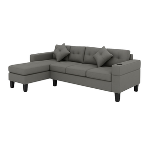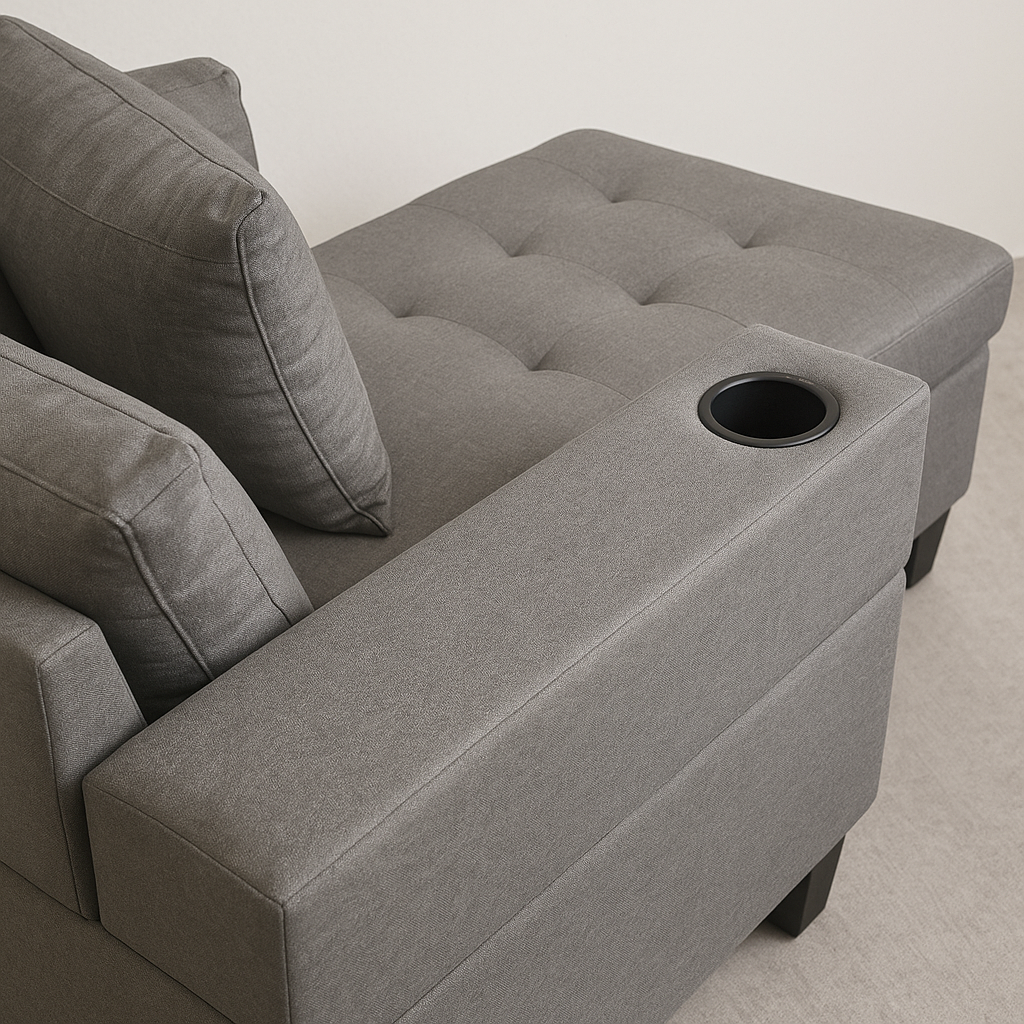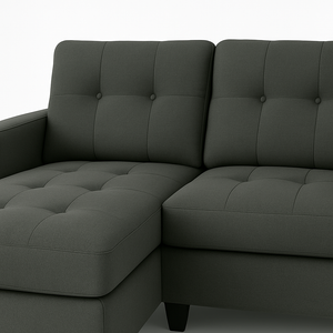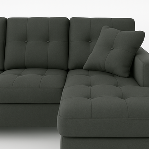 Stvorite savršen kutak za odmor uz sivu ugaonu garnituru Tapley, koja kombinuje moderan dizajn i praktičnu funkcionalnost. Sa reverzibilnim kutem, lako se prilagođava svakoj prostoriji i vašim potrebama.